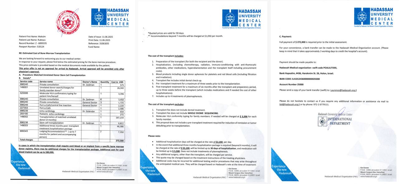 Хадасса выставила счёт — 25 миллионов рублей. Это непосильная сумма 😭.