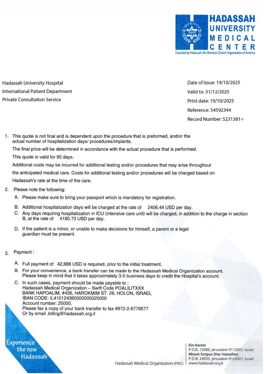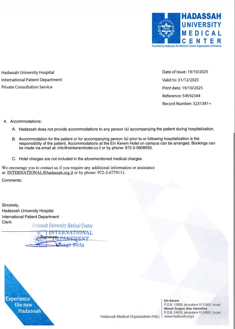 Требуется срочное лечение в клинике в Израиле