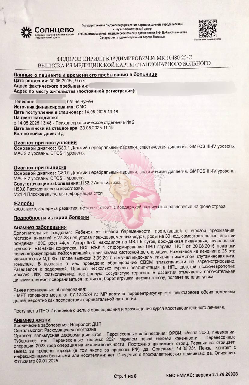 За свои 11 лет Кирилл уже прошёл через множество больниц, занятий и процедур. Каждая реабилитация даёт ему маленькие, но очень важные результаты. Это шаги вперёд, которые для нас значат целый мир.