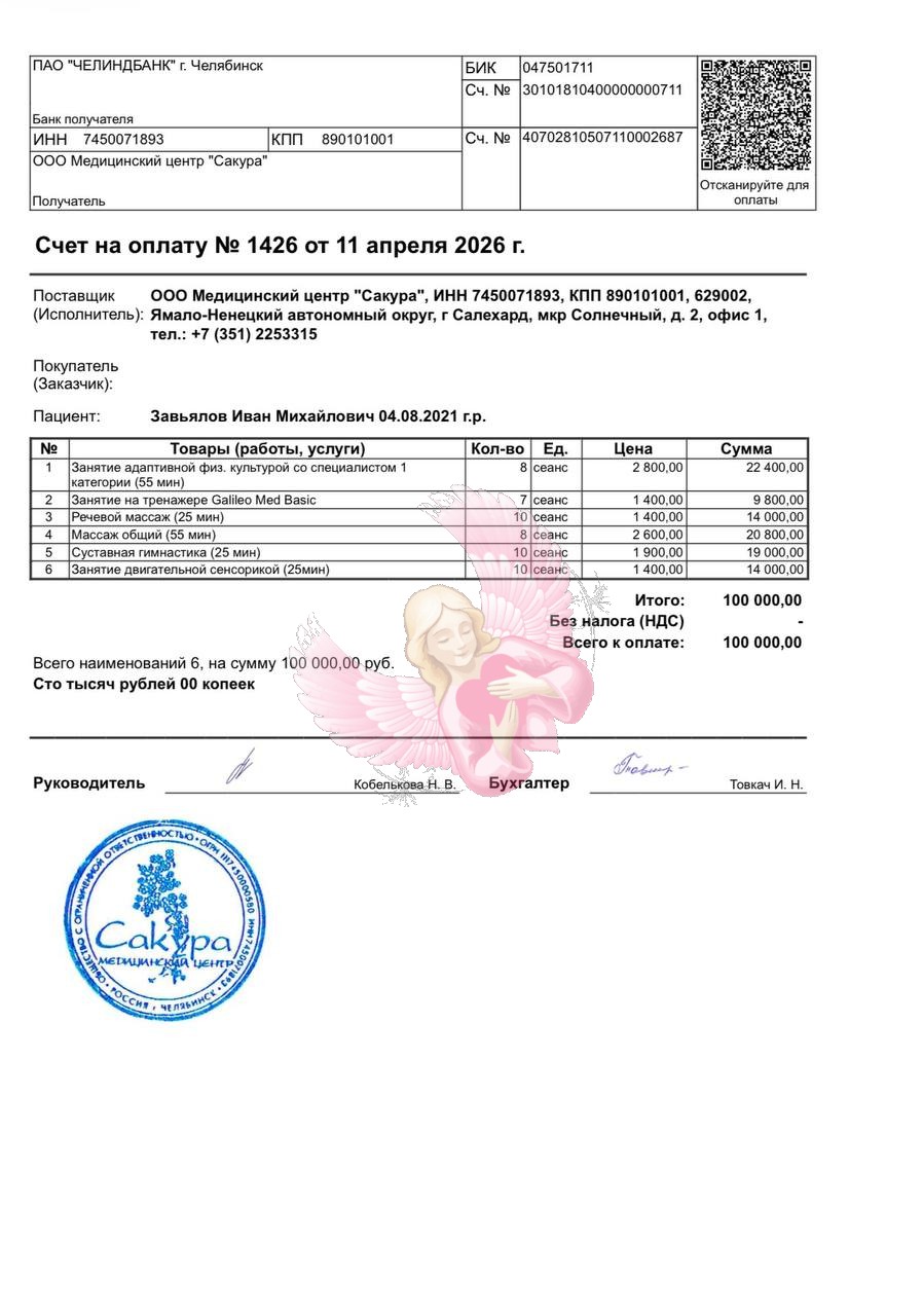 Сейчас Ване необходим курс реабилитации в клинике «Сакура».