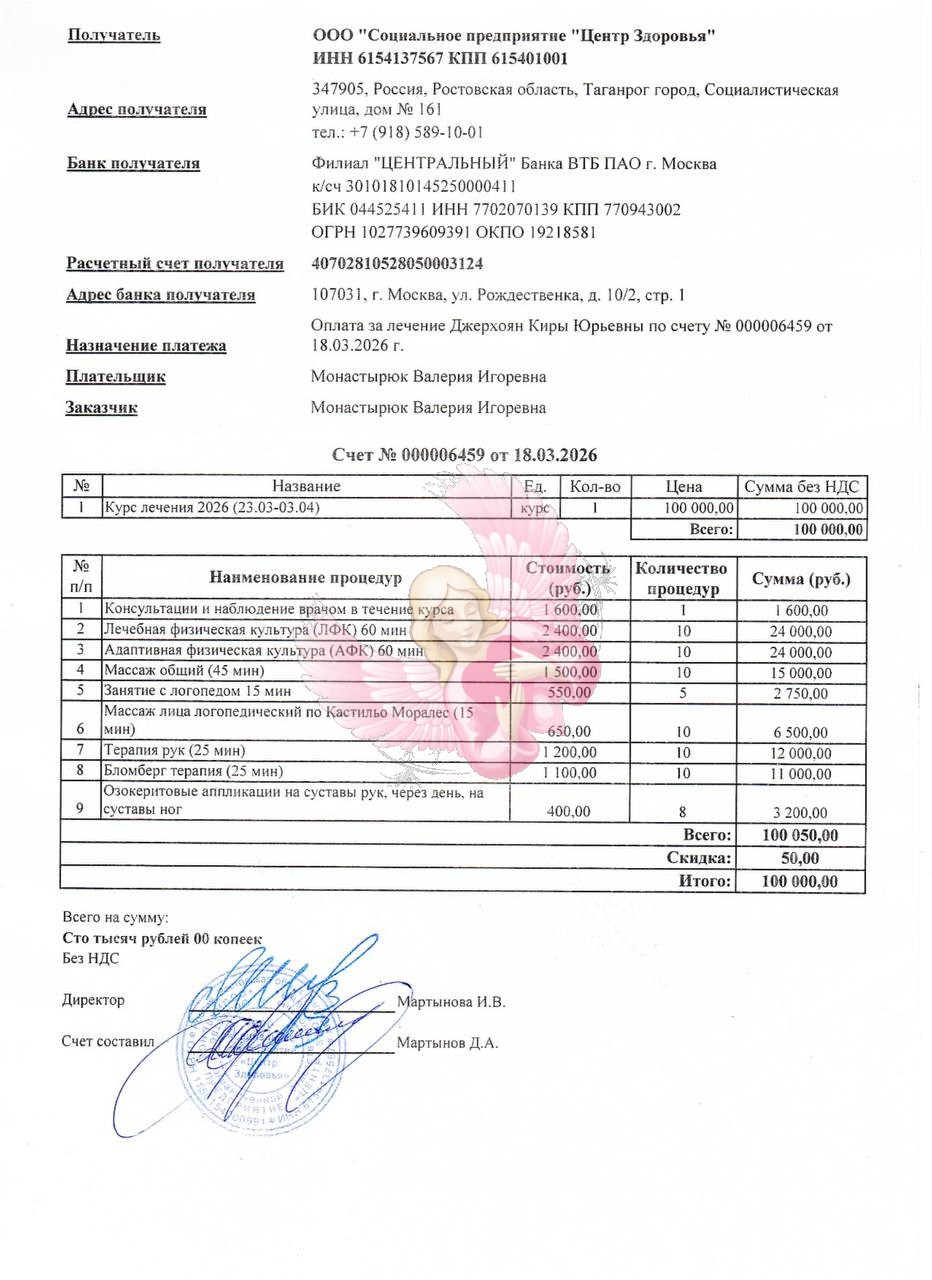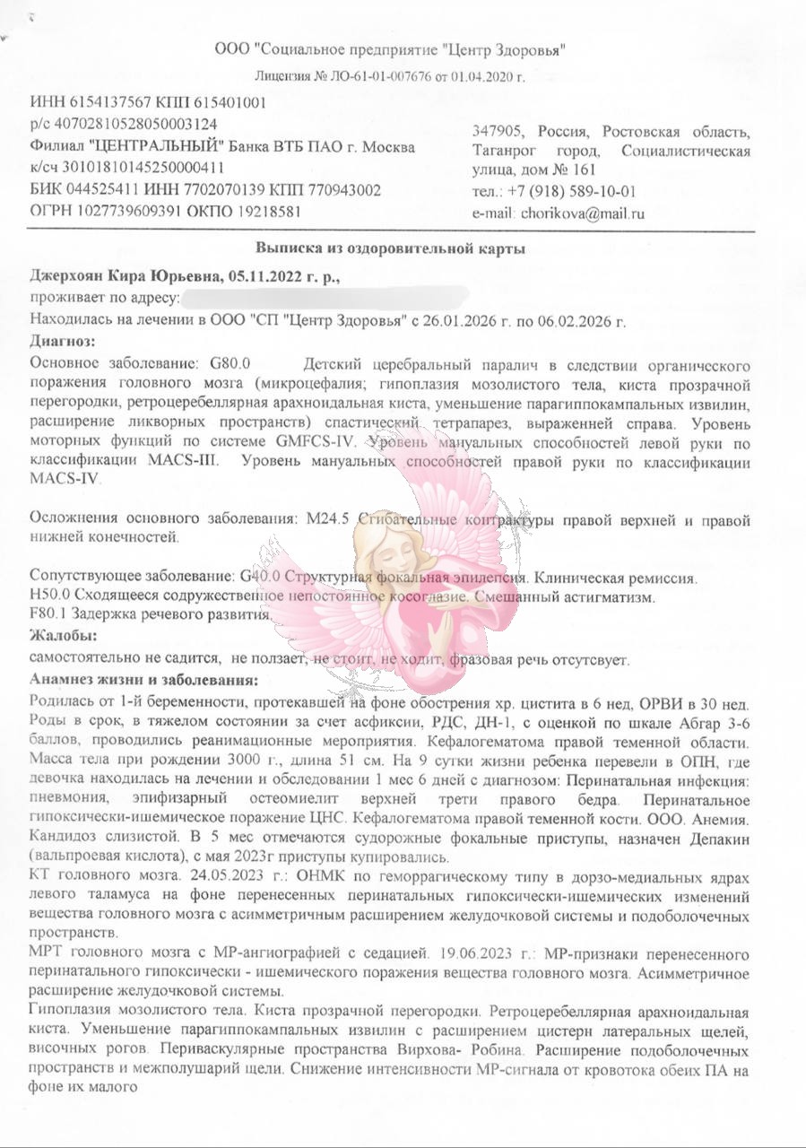 Сейчас Кире необходим курс реабилитации в клинике «Центр Здоровья».