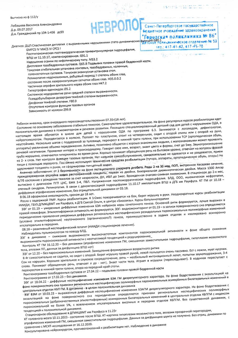У Василисы ДЦП, спастический тетрапарез 😭