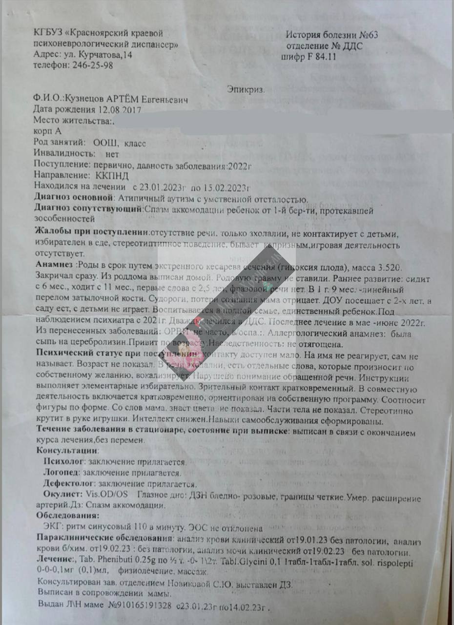У Артёма диагноз — атипичный аутизм с умственной отсталостью 💔