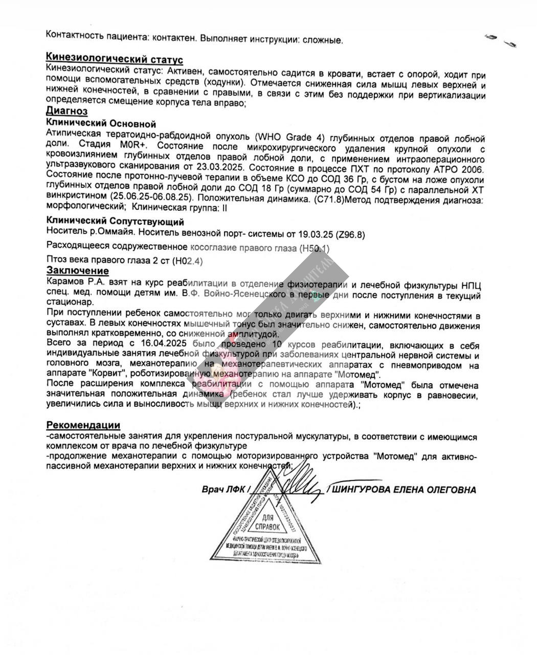 Вместо школы, друзей и обычного детства он столкнулся с тяжёлым диагнозом — атипическая тератоидно-рабдоидная опухоль глубинных отделов правой лобной доли, агрессивный рак головного мозга 💔